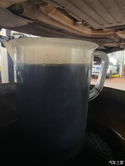 重点:保养前在车机内量了下机油位,少一小格,想看看到底烧了多少机油,(1保和2保都是加的5.25L),所以这次放机油特意叫师傅拿了个5L的量杯,放油也放了很久,除了油底壳放不出来的部分,其他应该是全部放掉了,得到5L整 ,从此推断1W公里消耗机油0.25L,我个人觉得这属于正常消耗+轻微烧机油,属于能够接受的程度..