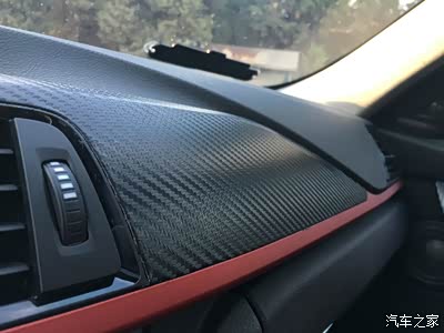 内饰钢琴烤漆,确实很好看,但是擦几次车之后就容易有划痕,所以我选择这种3D碳纤维布,质感看起来很像干碳,比那种碳纤维凉面的贴纸看起来质感要好的多,不舍得花万八千换MP十件套的,有想贴的车友,真心推荐这种