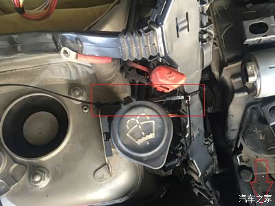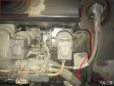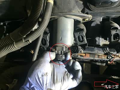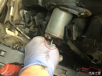 右下角圆圈里面是断开的燃油管快接头,放在一个塑料袋里面,接住流出来的汽油。