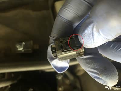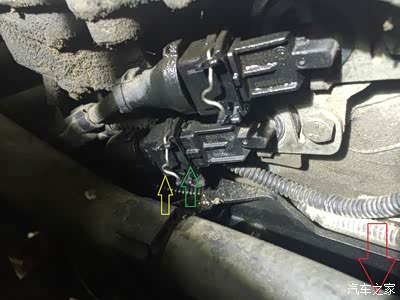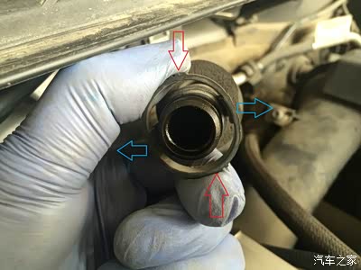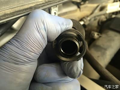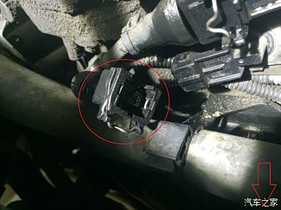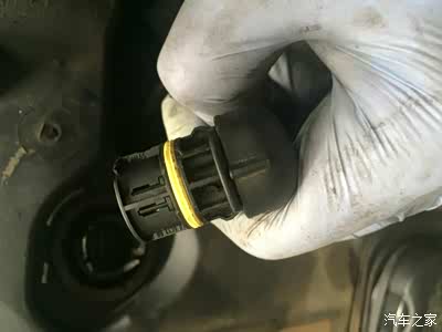 这样操作要很小心,因为会有汽油流出来一部分,而且断开快接头后绝对不要再开车门,否则燃油泵会动作一次,给喷油嘴这里建立一个压力,导致更多的汽油喷出来。