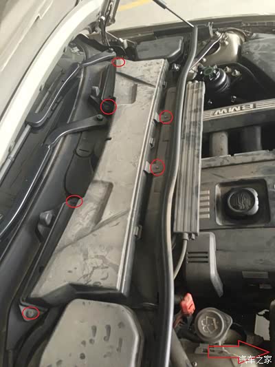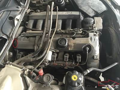 下面描述中,都是以驾驶员一侧为左,车头为前。例如,“发动机的右后角”,就是指的发动机离副驾驶车门最近的那个角。同时,照片上角落的箭头指向车头方向,方便你参考。