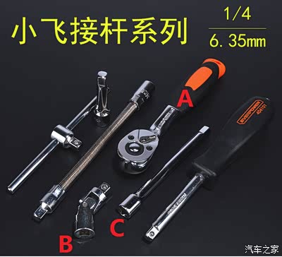这个DIY里面有两个螺栓因为位置的关系,拆下来需要里面的万向节B和加长杆C。