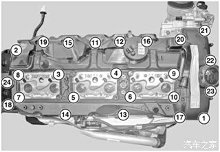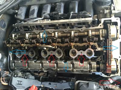 没找到N52B25发动机螺栓紧固顺序,只看到这个N54发动机的螺栓紧固顺序。凑合做个参考吧。关键是按对角线上紧,工科直男都懂的。