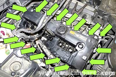 拆气门室盖,最大的挑战是空间,尤其是6缸发动机。这个气门室盖上面很多的线束需要移开,同时气门室罩后侧和右侧都会被其它部件挡住(N52发动机气缸顶部是向右歪的,所以气门室罩要向右上方向拿出)。如果你不知道秘诀,基本上气门室罩就会被几毫米的干涉挡住,很难拿出来放进去。只要你安装这个DIY一步步来,保证你不需要任何帮手,自己一个人就可以轻松的把气门室罩拿出来。