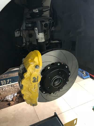 当时定的轮毂还没有到,借的冯老师轮毂先耍一耍,大轮毂加塞满的刹车盘***到位了。