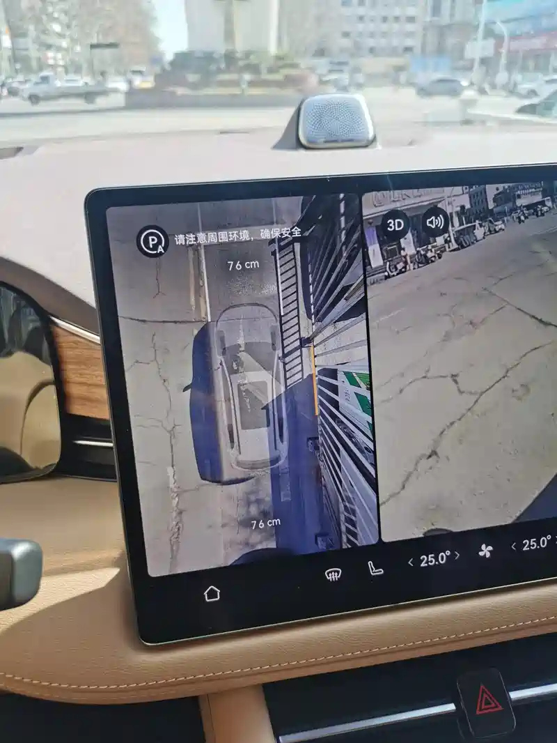 问界M7使用过程中,突然发现360全车影像中,左侧车体是透明的,可以看到地面的方向标识,这是怎么做到的?车上方有个向下的摄像头?那样车体也应该是实体车,不应该是透明的吧?车下边有个摄像头?怎么可能会照这么大出来?