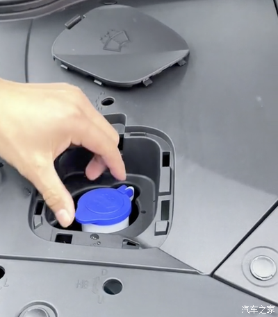 车盖翘起来后,摸里面那个黄色的,能把整个盖子抬起来,本身盖子有液压系统,起来之后还是很舒服的。加玻璃水的位置是有标识的,不要加错地方了,并且有个盖子,需要先把盖子抠开,然后再打开蓝色盖子加水,一般来说,如果用完了的话,可以加完两瓶1.5L的玻璃水。
