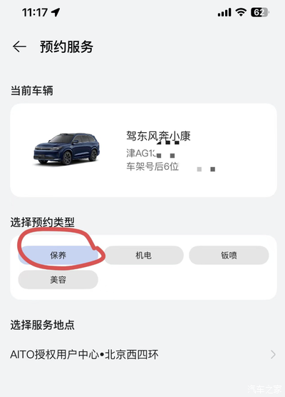 服务类型就选择保养,到了用户中心,直接跟售后说冬季健诊就好了,他们都知道的,预约的时候是需要选择时间段的,去的时候按这个时间段去就可以。