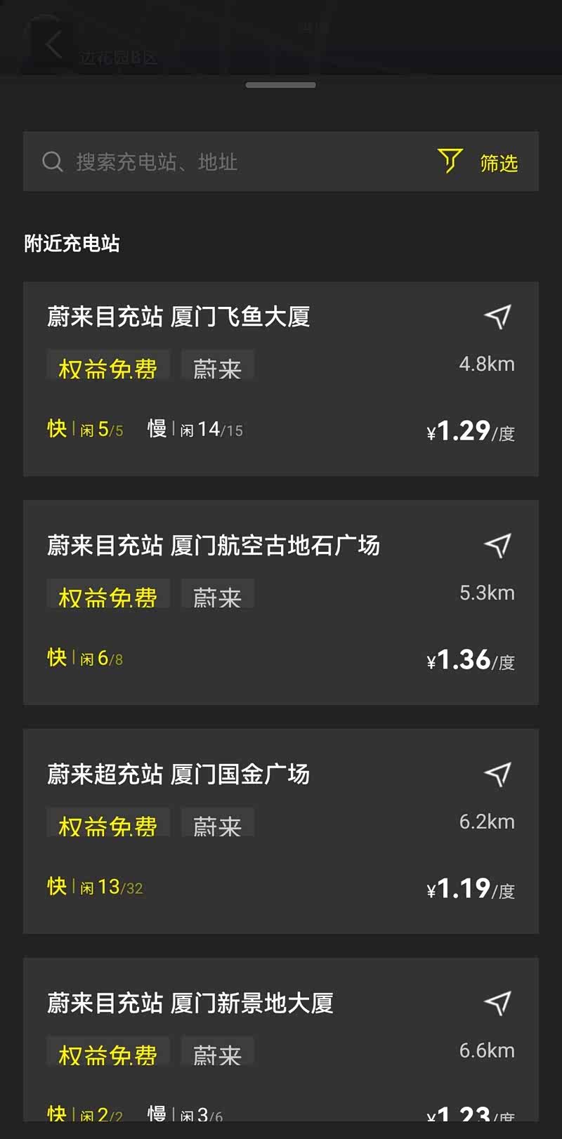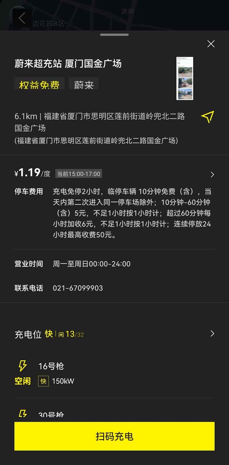 这次特意过来蔚来充电站体验充电效果,先在路特斯APP地图上看蔚来充电网络站,在上面找附近的充电站,还有看有没有空闲桩。蔚来充电站有分慢充和快充,慢充是7KW一般不考虑。快充我看还分20KW,120KW,150KW,200KW,还有500KW的超级闪充站,不像路特斯都是420KW以上的闪充站。因为不能像路特斯可以提前预约充电桩,只能到现场扫码充电,我选择了厦门国金广场蔚来超冲站,看这边总共有32个桩,空闲还比较多还是150KW的快充。跟着地图导航过去,导航的定位不是很准确,我绕了两圈才找到。这是一个对大众开放的蔚来超充站,所有的电车都可以冲,所以过来已经有好多车在充电,各种品牌都有,我找了一个空位停了下来,拔枪插上快充口,用路特斯的APP扫码充电还是很方便的,因为选择的150kW超充速度也不算慢,我电量还有35%所有冲了半个小时就冲好了我设置的95%,冲电结束直接拔枪就行,路特斯APP自动结算,整体感觉还是不错方便快捷。整体感觉还是没法跟路特斯闪充站比。平时还是喜欢路特斯高大尚的闪充站,这只能应急的一种补充。