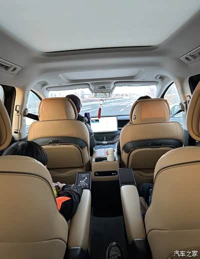前排驾驶位和副驾驶位的空间十分宽敞,我调整好座椅后,腿部和头部都还有很大的活动空间,开车的时候完全不会觉得局促。第二排的座椅就更舒服了,不仅可以前后调节,还能调节靠背角度,家里的老人坐在上面可以舒舒服服地躺着休息。中间的过道也很宽,方便人在车里走动。第三排的空间也比我想象中宽敞许多,坐两个成年人完全没问题,不会让人觉得特别憋屈。