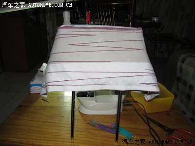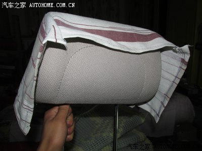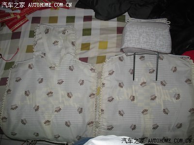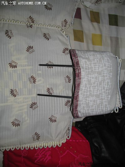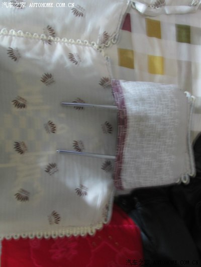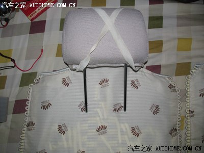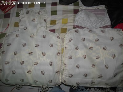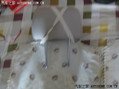 买车时候买的坐垫,前排的 可以套在头枕上,后排的 只有2条松紧带,时间长了,松紧带拉力不行,顺便用家里的小缝纫机做2个头枕套 ,没有布料 找了一块 前几年做沙发套的布料 用上了,左边的只有2条松紧带,右边是我做好了的