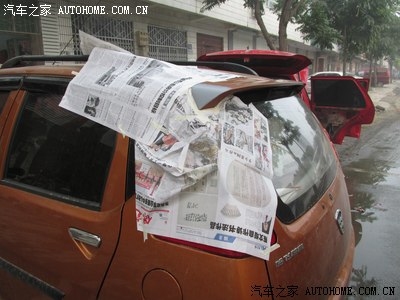 当天下午 喷完保险杠和摩托车 已经很晚了, 然后就出去吃饭了 我的车 开了好几天 才拉回来 正好安装 射灯 和气喇叭效果还不错