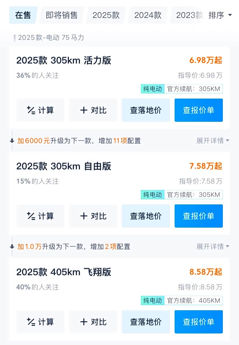 25款305km活力版指导价:6.98万元