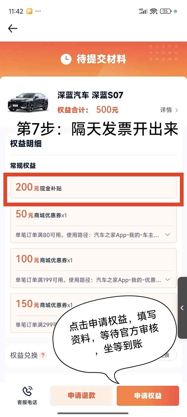我看到有好多兄弟姐妹们问我深蓝汽车怎么申请权益,
