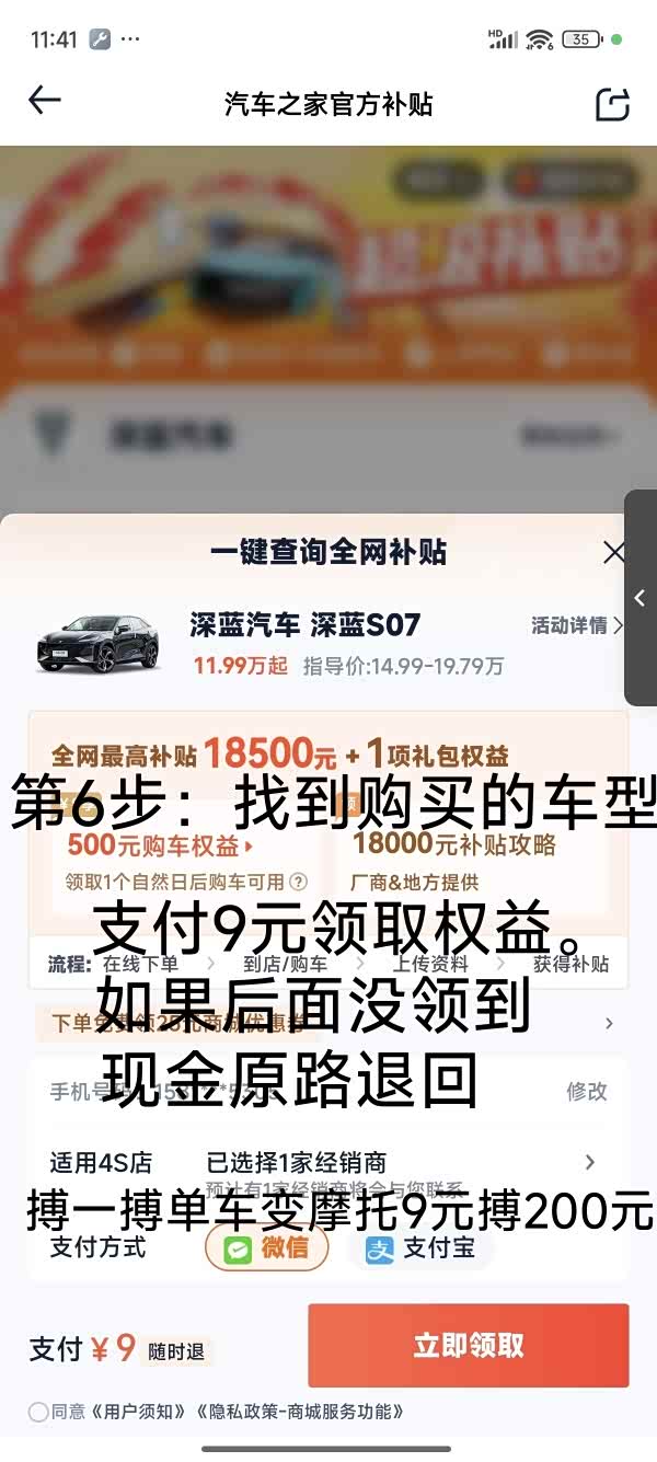 车之家的补贴,最少要在发票没开出来,提前一天就领