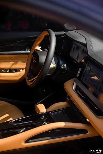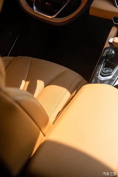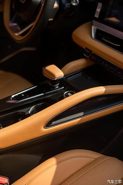 车内的设计有科技感也很有豪华感,很多地方都是用皮质包裹的,摸上去很有手感,而且黑色和焦糖棕的配色也让车内视觉感更加年轻。