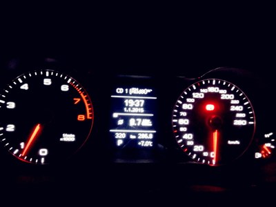 提车跑了两天,前天从成都回去的时候绕城8公里路程堵了两小时!今天跑了下高速,定速100,一共19公里,三环稍微堵了下跑的,大家猜猜油耗? 保护膜没撕,拍得不清楚,舍不得,宝宝的都5年了我都没撕!呵呵!