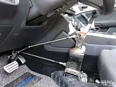 这个辅助装置操作起来很方便,油门是通过电脑数据传输,方向盘后面那个圈圈,圈圈上面是一个可以左右转动的拨片,拨动拨片就可以给油,刹车是物理控制,就是方向盘下方突出来的那个手柄,通过杠杆控制下面的刹车,向下压就可以刹车,和正常踩刹车的反应速度一样。