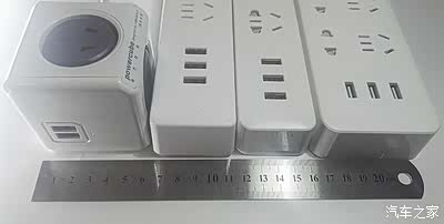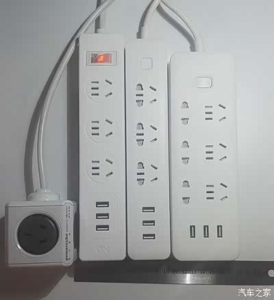 家中也有之前购买的3款其他品牌的USB插座,正好也拿来横向对比下。右手边的2个都是公牛家的USB插座,左手边的是魔方USB插座。