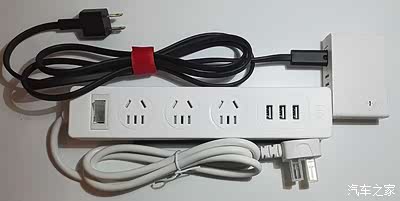 插座尾部配备了3个USB接口,总共最大电流输出为2.4A,并不支持快充。