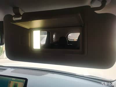 比如前排的遮光板附带的小镜子里的灯就很实用,晚上在车里等人时,打开遮光板,淡黄色的灯光自动打开,冬天的夜晚,感觉暖暖的。实名感谢设计师没做成白炽灯的效果,只有这种淡黄色的光线才能给人真实的感受。