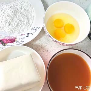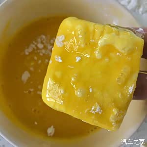 (第二次做用的是一个鸡蛋再加两个蛋黄,这样炸出来的豆腐颜色很金黄,新手这种更粘稠的蛋液也好裹豆腐一些)