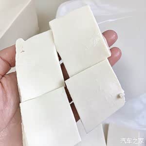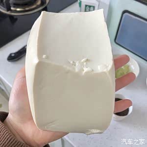 这个是嫩豆腐,老豆腐太硬做出来不够嫩。放在手上切成四块