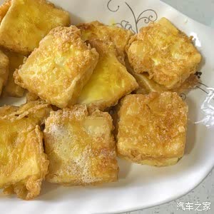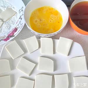 豆腐切块裹上淀粉,再裹上鸡蛋液