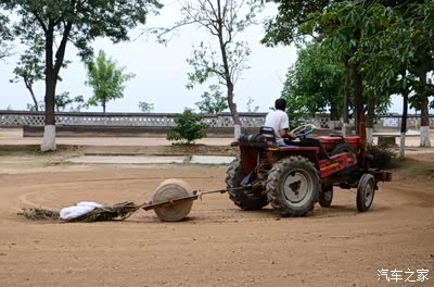 哈哈,我们还看见驾着拖拉机、拉着石碾子在窑洞顶上碾压加固的操作。这个碾子以前是依靠牛马拉的,如今进步了,改成拖拉机了,不过碾压的传统工艺却没变。