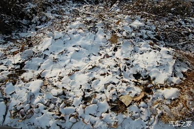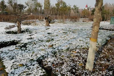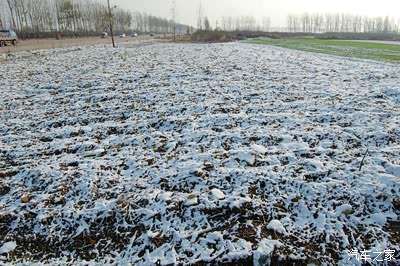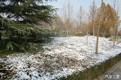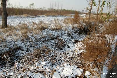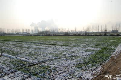 路边的田地里覆盖着薄薄的雪