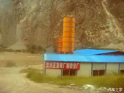 对岸是一个混凝土搅拌站。搅拌站厂房上写着“广州援建”。各省市支援灾区建设,都在灾区有援建项目。
