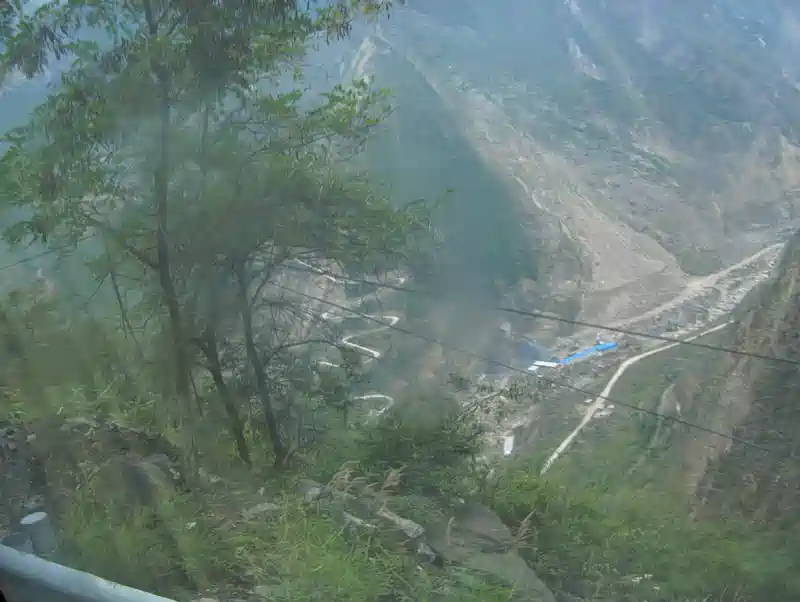 17日早上从松潘乘长途客运大巴赴都江堰。汽车行驶在G213国道上,穿行于崇山峻岭间。8:40来到这个峡谷,岷江就在峡谷中流淌。