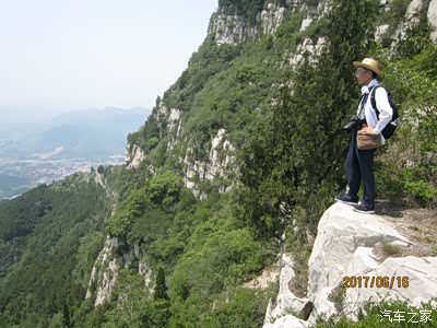 我可是不管那一套的,既然来了,就登吧。其实山上那也不叫路,就是认着有人走过就走罢了。第一次走到绝壁下没路了,只好回头往下走,重新找路。向主峰反方向走了好远才找到上山的小路。登上山脊,离主峰就更远了。好在山顶有人走过的路,于是就去了山顶。