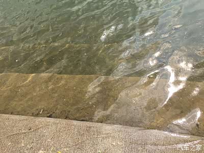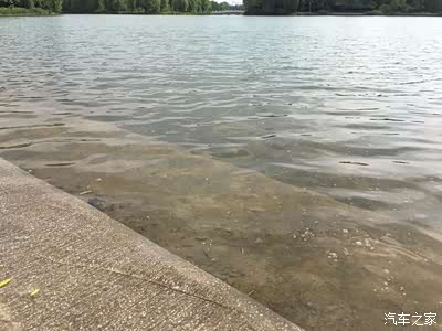 这个湖水还挺清澈的,泛着波澜向着岸边飘过来。