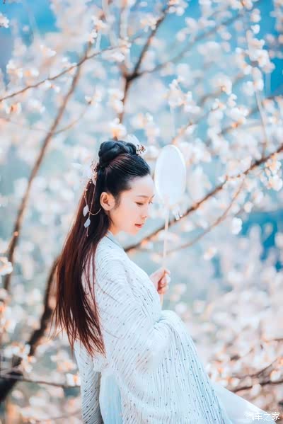忆来何事最销魂,第一折技花样画罗裙。兰心惠质的女子,不屑用外面的庸脂俗粉,而别出心载的用山水画的折枝技法,在素白的罗裙上画出意境疏淡的图画。