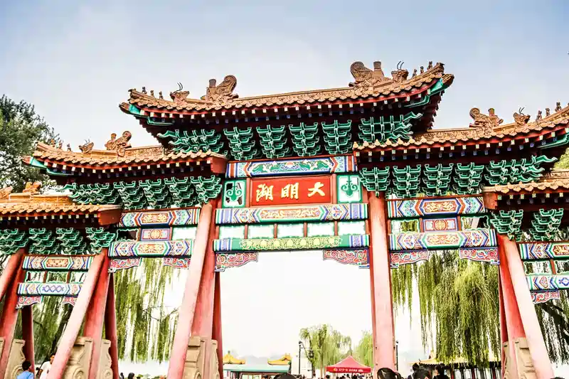 大明湖是济南三大历史名胜之一。位于济南市历下区旧城区北部,是由济南众多泉水汇流而成,湖水经泺水河注入小清河。湖水面积46公顷,水深平均2~3米。