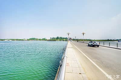 沭河是一条水面宽阔、气势雄壮的蜿蜒长河,在这里被纵贯南北的大坝拦截,坝顶有五尾硕大红鲤一字排开,飞跃龙门之势呼之欲出。而且这里河水碧蓝,沙滩金黄,林带葱茏,空气清新。春天风和日丽,景色秀美,夏日风平浪静,水似缎面,秋末波涌浪翻,玉飞珠溅,冬季激浪排空,蔚为壮观,构成四季色彩分明的美丽图画。