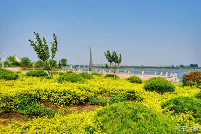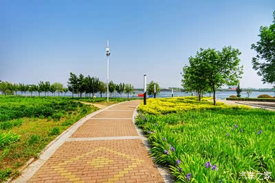 北面是沿河漂亮的绿化带,还有很多种类齐全的运动场,地面各色花砖拼出的立体图案渗透出强烈的动感。