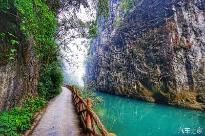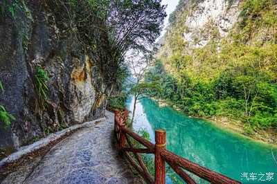 车开十公里左右就没有马路了,只能步行前往大河苗寨,栈道修得非常好。