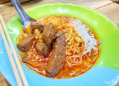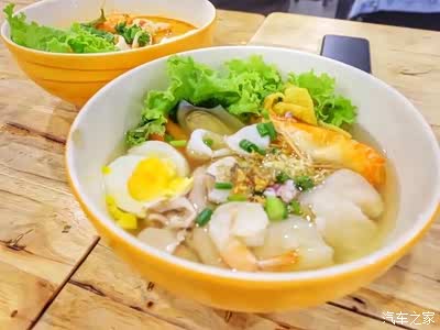 经历三个多小时的航行,走出机场,迎面而来湿热的微风,耳边充斥着的 萨瓦 迪卡,对着夜空默念: 清迈 ,你好哇!~ 此时已经有点饥肠辘辘了,约好的接机小哥按时到达机场门口,热心地帮我们把行李箱放到后备箱,载我们去酒店啦,在酒店前台办好了入住,就迫不及待去离酒店不远的夜市看看有什么好吃的。( 清迈其实不是很大,ISTY酒店在古城区.)步行了10分钟左右看到了类似大排档的小夜市,有卖面线的,有卖水果的,有卖烤串的,有卖煎饼的,很热闹哈。 (图下这家辣味鸭血面线很好吃,但我给忘记名字了,离酒店不远)