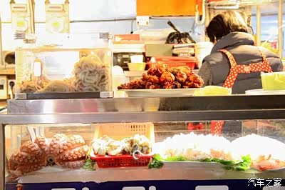 第一次看见活吃章鱼这个吃法,是在谢霆锋的《十二道风味》里,谢霆锋带着阿SA在济州岛的市场里品尝了新奇的活吃章鱼。而在首尔知名的广藏市场,活章鱼的摊子随处可见,每个店家都把他当成招聘菜品,放在了最显眼的位置。