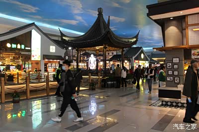 沪宁高速阳澄湖服务区位于江苏苏州工业园区唯亭镇。这是一个中国仅有世界全无的苏州园林式服务区。服务大厅河流拱桥水榭凉亭,沿岸两旁粉墙黛瓦,都是店铺买卖,完全是个古镇模样。大厅里还有个阳澄湖非遗文化艺术中心,各种苏州工艺,应有尽有。大厅的屋顶,灯光早打造出了蓝天白云,跟室外一样。