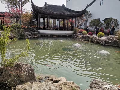 服务大厅后边是两个园林,一个木樨园一个风荷园。叠石做山,掘地成塘,流水瀑布,石桥曲廊,一排苏州园林风貌。