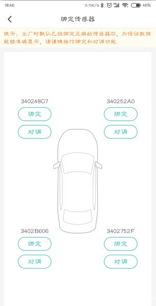 除了可以设定胎压胎温的范围外,还有个绑定传感器选项。