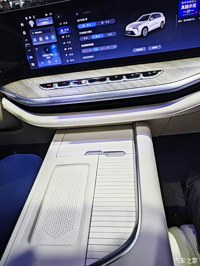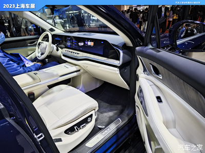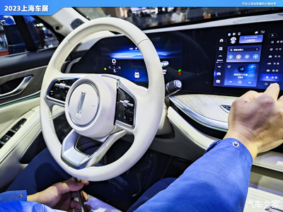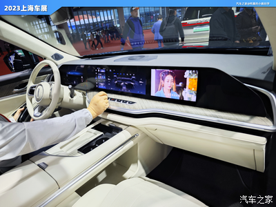 进入车内,第一感受就是舒适感很好,车内大面积都使用了软质包裹,无论是质感还是触感都很好,中控贯穿一体屏布局也很亮眼,中控屏尺寸为27英寸,液晶仪表显示尺寸为12.3英寸,不仅很亮眼实用性也很好,智能互联配置方面具有GPS导航系统、导航路况信息展示、道路救援服务、蓝牙/车载电话、车联网以及面部识别等功能。
