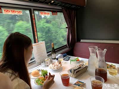 车上吃得还算可以,有牛排有三文鱼还有各种酒供应。