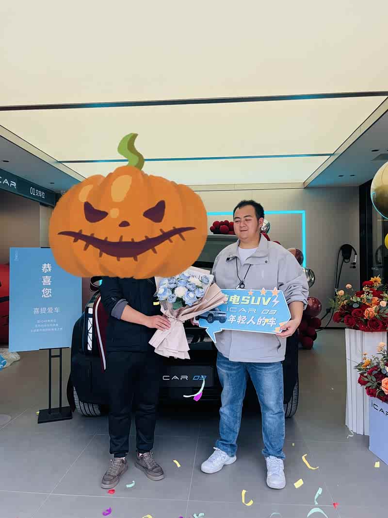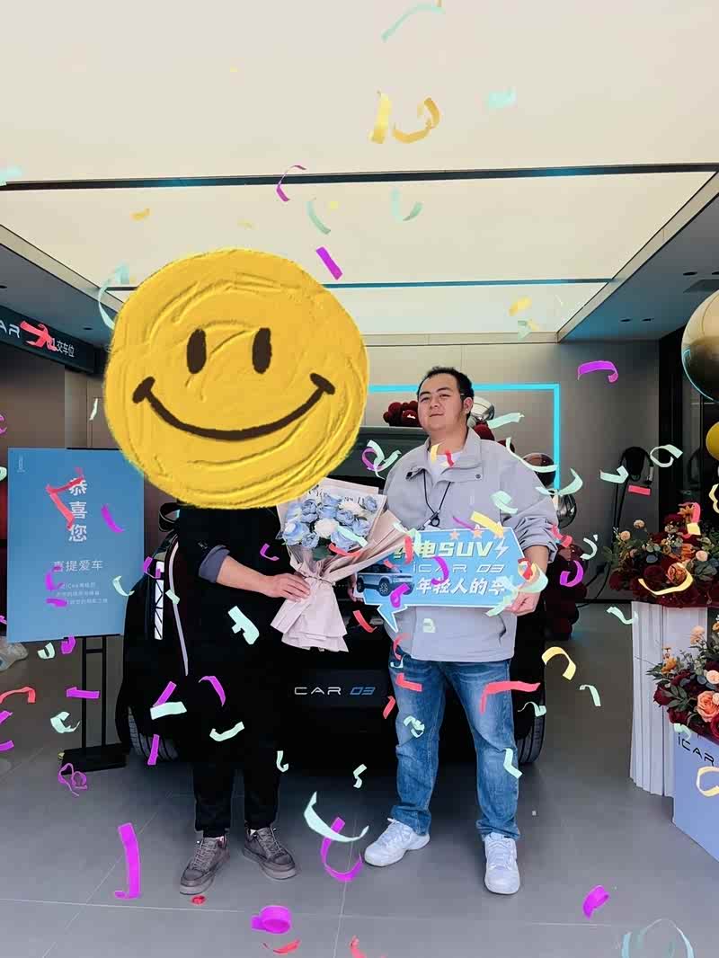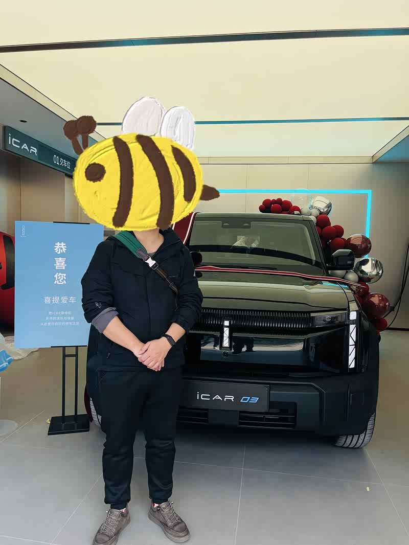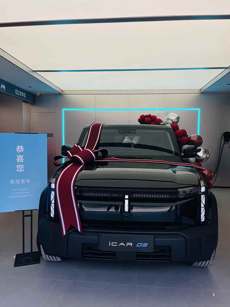 第一次听说icar03是无意中刷B站,号称独创的全铝多腔笼式车身,实际4.2的车长一下就打动了我,这不就是最最适合我媳妇城市代步的安全神器吗,果断抽了一个周末避开我媳妇,约上好朋友先去试驾一番,一到店就被颜值吸引,我朋友迷上了不焦虑,我看上了白色,果断试驾,我们试驾的四驱次顶配,我朋友是瑞虎7车主,试驾路上一直说奇瑞质量好,这么多年从来没有掉过链子,等我实际试驾,坐姿高,动力足,特别是底盘调教,真的能媲美我40来万的油车,果断准备下定,下定前还是准备把正主叫来也试驾下,回家以后跟媳妇说了这车,媳妇准备把车牌上到老家重庆。 正好赶上过年回家,联系了重庆的销售,然后直接下定了白色外观,白色内饰的智驾版,然后高高兴兴的带着正主试驾,媳妇很满意,但对颜色和内饰不满意,跟销售沟通后将外观改为不焦绿,内饰改为绿野仙踪,然后开始了漫长的等待,20多天过去了,终于接到4s店电话,办贷款,上户,整整半天时间,然后从重庆出发到贵阳,高速上300来公里,设置了100公里的辅助驾驶,一路上坡,差不多6折左右的达成率,还是比较满意的,希望icar03越来越火吧!#iCAR 03 玩点不一样#