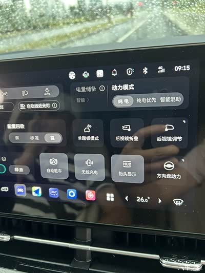 中长途行驶我选择纯电优先,出发前夜我会将电量充满,先会选择用电跑,电耗还剩20%时选择了纯电优先,系统会自动计算电量和油耗,本来在想电量见底后油耗会飙升,结果全程算下来百公里才7个多油耗,比我朋友的燃油MPV省了有一半。
