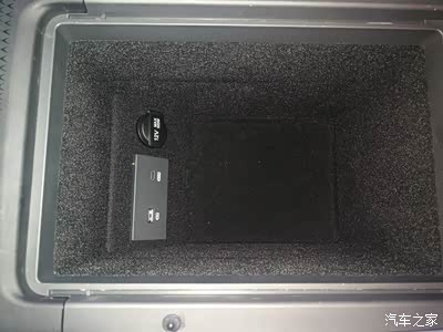 中央扶手箱深度不小,被绒布包裹着,在底部设置有2个USB插口和一个点烟器插口。