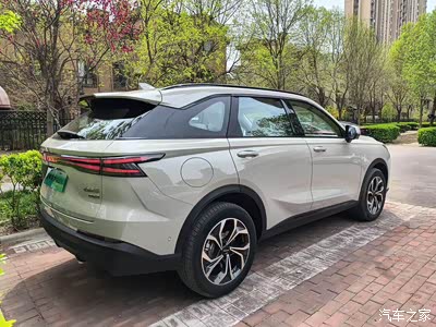 车身线条流畅,虽然车身挺大,但是看着还是很灵动。前脸的设计很独特,大灯组造型犀利,点亮后辨识度应该很高。车身整体比例协调,尺寸也够大。
